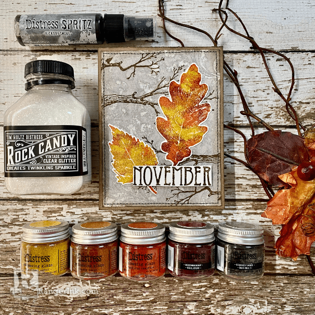 Tim Holtz Distress Glaze, Glitter, and Spritz Fall Card by Tami Bastiaans