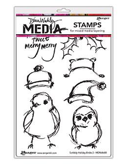 Dina Wakley Media Stamp Scribbly Holiday Birdie 2