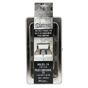 1Tim Holtz Distress® Ink Pad Storage Tin is the ideal storage solution for Tim Holtz Distress® Ink Pads and Distress Oxide® Ink Pads. Organize and transport Distress Ink Pads easily in this convenient tin. Features a clear window & hinged metal closure. This convenient, portable storage holds 15 - 3 x 3 Distress Ink or Oxide® Ink Pads.