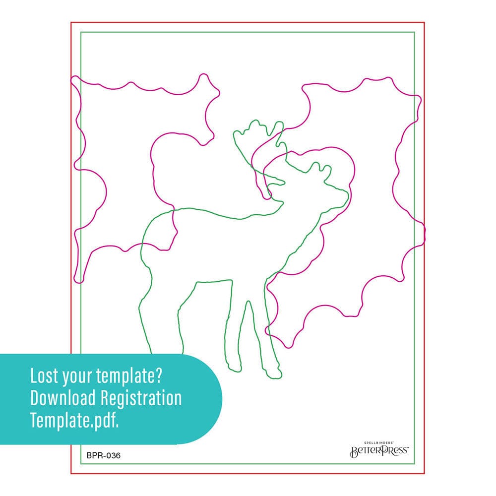 Cheer and Good Tidings Deer Registration Press Plate & Die Set is from the Starry Holiday Collection by Dina Wakley. The set of four press plates, two thin metal cutting dies, and one mylar printed registration template come together to create a deer enjoying the outdoor night scene with the stars and crescent moon to boot! Use the registration template to make a card with all the plates, or use each plate on it's own for endless style choices. The best part? Many of the plates can be used all year long! The full design measures approximately 4.44 x 3.87 in./11.30 x 9.80 cm.