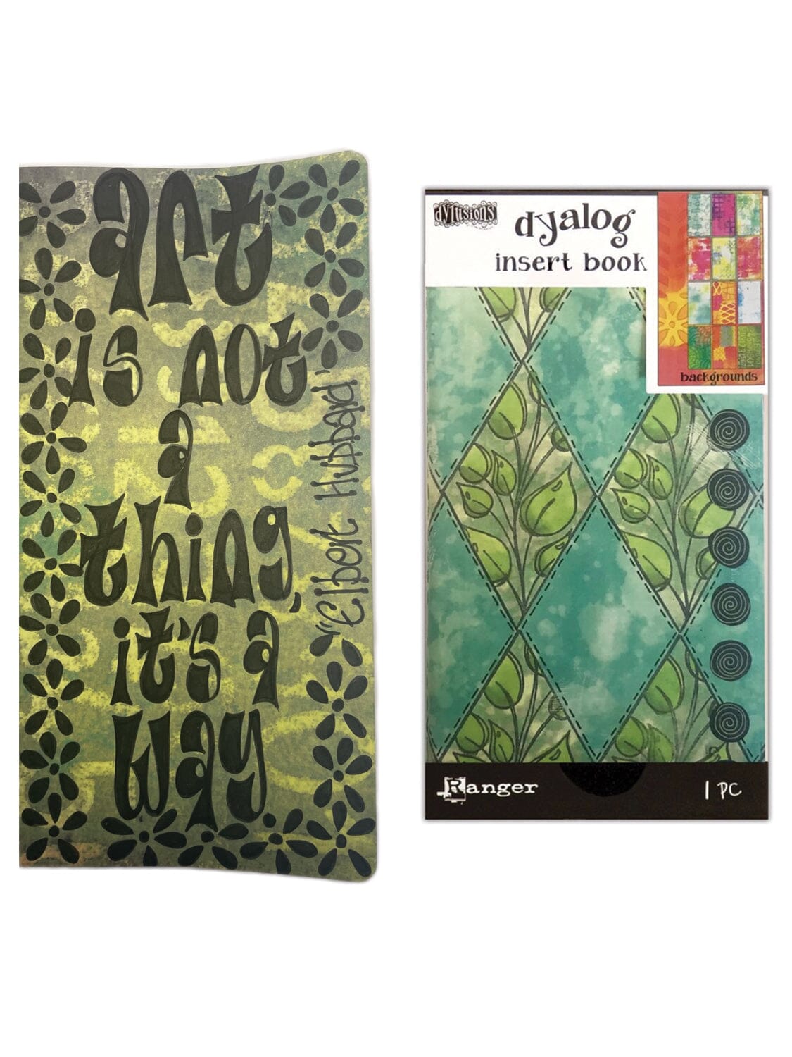 Designed to coordinate with the Dylusions Dyalog system, Insert Books are ideal for adding into your Dyalog covers to create a book of your own. Featuring black and brightly printed covers, these books include a variety of page styles that fit all journaling preferences. Made out of the same great Mixed Media Cardstock found in the Dylusions Creative Dyary, Insert Book pages accept a variety of mediums without bleeding through. Dyalog Insert Books contain pages featuring functional and creative options. Available in Backgrounds, Black with Dots, Dots, & Kraft.