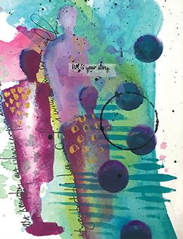 Laura Dame layered collage papers, vibrant Dina Wakley Media Glosses, and bold stamping to create this moody and textured journal...