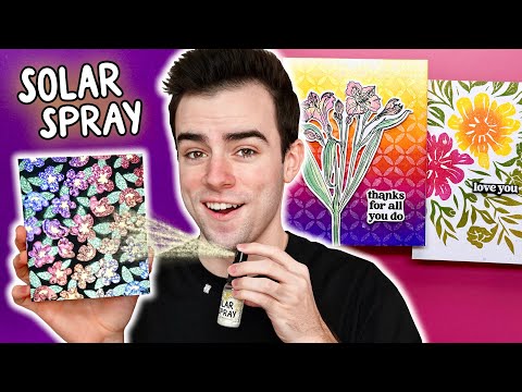 Simon Hurley create. Solar Sprays bring a marbled pearlescent shine to any crafting project, adding depth and brilliance with every mist. These versatile sprays offer a subtle shimmer on white cardstock, while revealing an intense colored shine on black cardstock for a striking effect. Perfect for adding a finishing touch or layering over inks, Solar Sprays create dynamic backgrounds, eye-catching highlights, and stunning mixed-media effects. Elevate your creativity with radiant, color-shifting shine that transforms ordinary projects into extraordinary works of art! Available in 1 fl. oz. spray