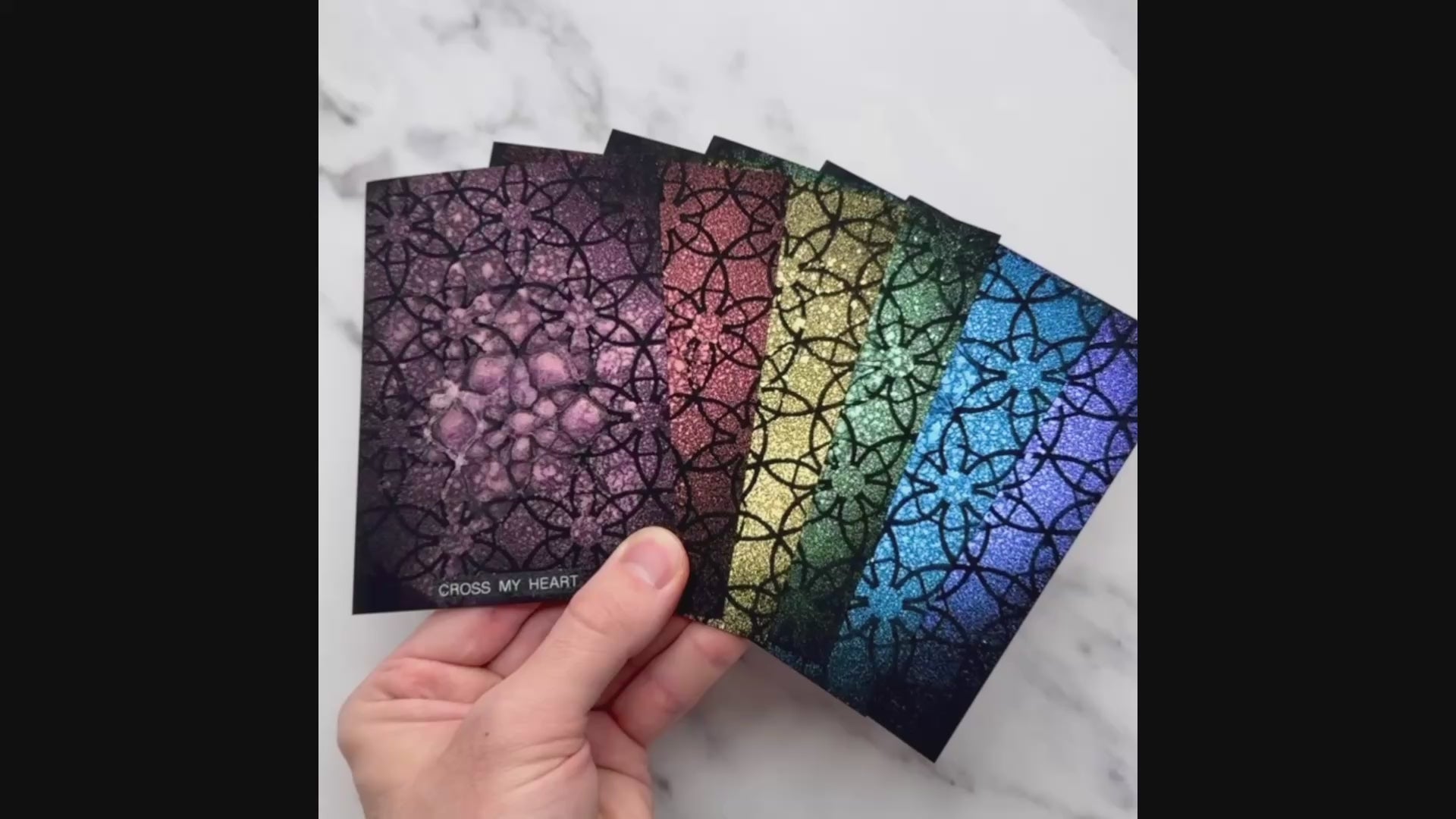 Simon Hurley create. Solar Sprays bring a marbled pearlescent shine to any crafting project, adding depth and brilliance with every mist. These versatile sprays offer a subtle shimmer on white cardstock, while revealing an intense colored shine on black cardstock for a striking effect. Perfect for adding a finishing touch or layering over inks, Solar Sprays create dynamic backgrounds, eye-catching highlights, and stunning mixed-media effects. Elevate your creativity with radiant, color-shifting shine that transforms ordinary projects into extraordinary works of art! Available in 1 fl. oz. spray