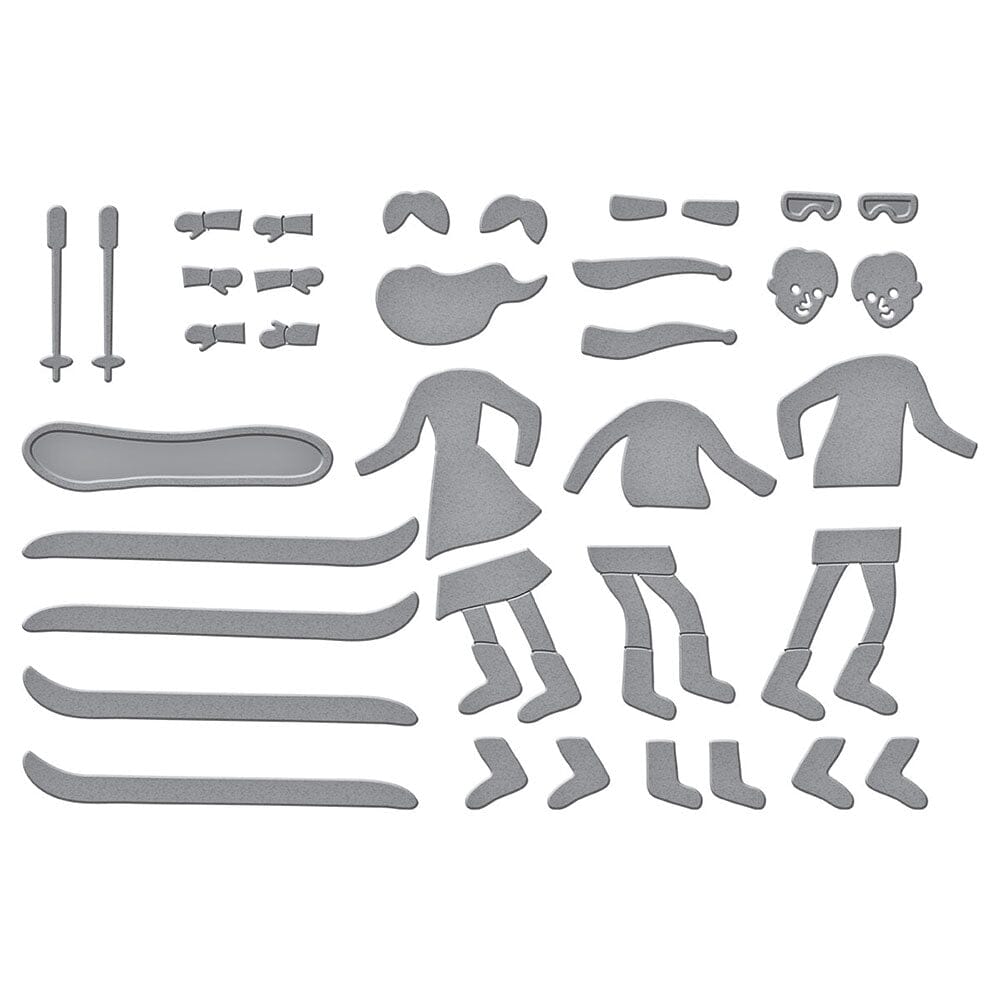 Hit the Slopes Etched Dies are from the Ski-son's Greetings Collection by Simon Hurley. When assembled, this set of 11 thin metal cutting dies creates a boy and a girl skier or snowboarder. Add in thier goggles, skis, boards and other items, and they’re ready to hit the slopes!